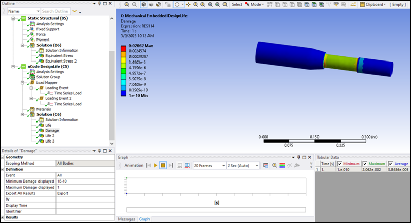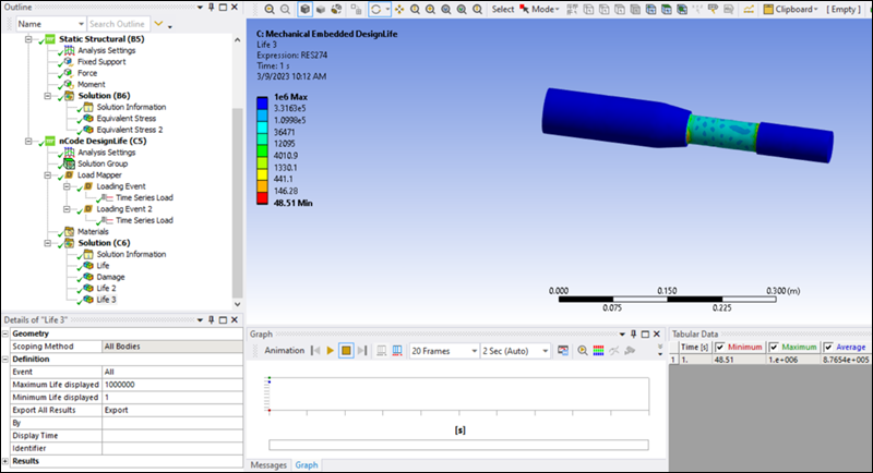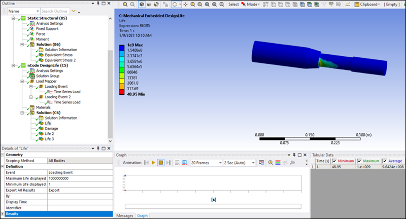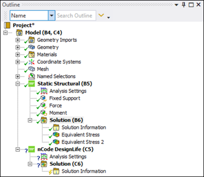 Click the DesignLife Analysis icon and verify that the nCode DesignLife (C5) object is inserted into Mechanical.