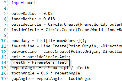 - Find the 'oRadius' variable in the script and edit as you did for the Teeth parameter.