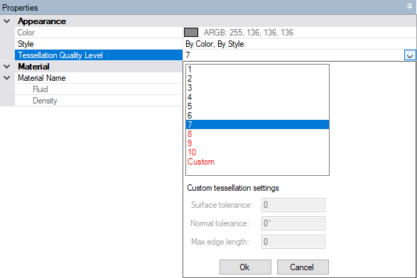 For bodies with large cylindrical faces, a facet quality of 10 may be required for adequate geometric representation during meshing. To avoid rendering the whole model with this value, you can set this value on each body using Body Properties in Discovery Modeling or under Appearance in Discovery.