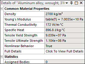 The name of the material. In the example above, the material name is Aluminum alloy, wrought, 3105, O.
