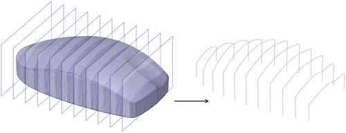 De tool Curves extraheren maakt curves door middel van dwarsdoorsneden van ontwerpmeshes.