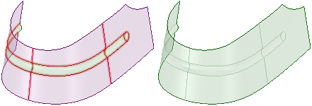 Инструмент Stitch (Сшивание) позволяет объединить грани поверхностной детали, чьи ребра соприкасаются друг с другом. Объединение граней с последующим образованием закрытой поверхности приводит к автоматическому созданию твердого тела. Этот инструмент можно использовать для исправления нескольких поверхностных деталей, принадлежащих разным компонентам. Перед тем, как инструмент Stitch (Сшивание) объединяет поверхности в одно тело, совпадающие грани обнаруживаются и удаляются.