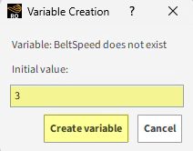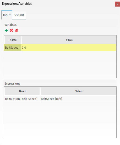 在Expressions/Variables面板上,显示了您定义的新的BeltSpeed变量和值。