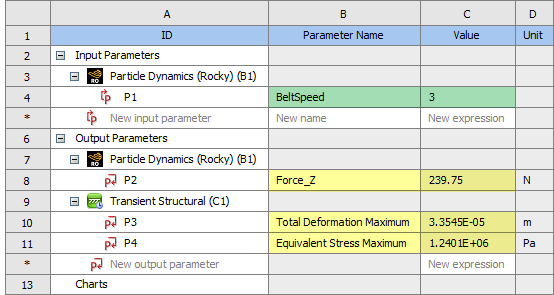 新的DP将在Rocky和Mechanical中运行,产生的输出参数将显示在此表中以供分析。