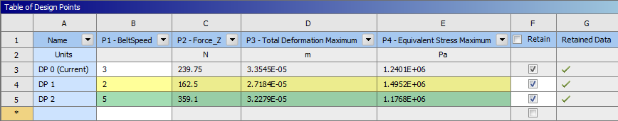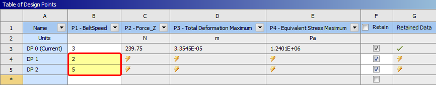 提示: 要打开新设计点的应用,您必须启用Table of Design Points上的Retain复选标记。