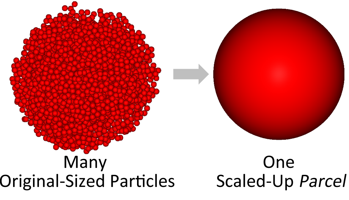 单个放大的parcel 的任务是表示许多原始尺寸的颗粒,同时保持与其表示的较小颗粒相同的相互作用行为。