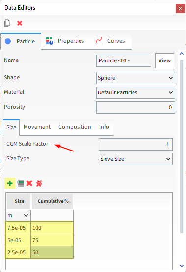 在Data Editors面板的Particle主选项卡上,选择Size子选项卡,然后检查CGM Scale Factor: