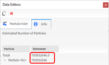 在Data Editors面板的Info选项卡上,查看颗粒的估算数。