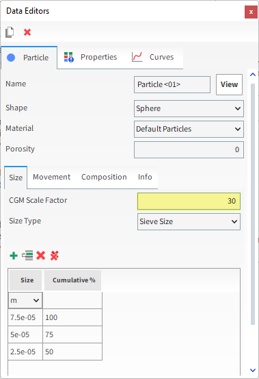 提示:Particles Details窗口始终反映集合中largest particle的尺寸。(本案例为7.5e-05 m。)
