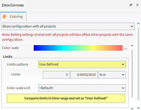 在Data Editors面板中,将Limits options设置为User Defined,然后单击Compute limits in time range and set as "User defined"按钮。