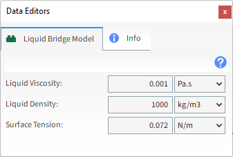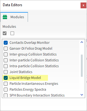 在Data Editors面板中,启用Liquid Bridge Model 复选框(如图所示)。