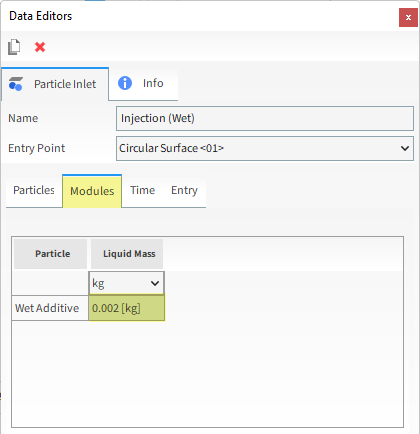 注意: 我们希望Dry Powder 颗粒在注射时是绝对干燥的,所以我们将Liquid Mass设置为0(零)。