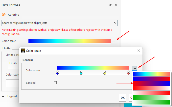 在Data Editors面板中,单击Color-scale旁边的…按钮。
