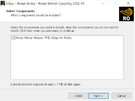 重要: Ansys Motion安装的文件夹必须与其它Ansys 2025 R1产品相同。