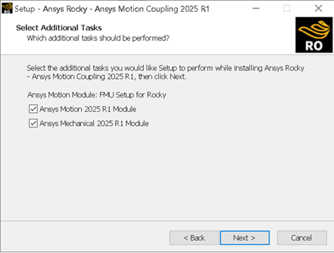 在Select Additional Tasks上,启用AnsysMotion2025 R1 Module复选框。同时启用Mechanical(可选)的复选框。