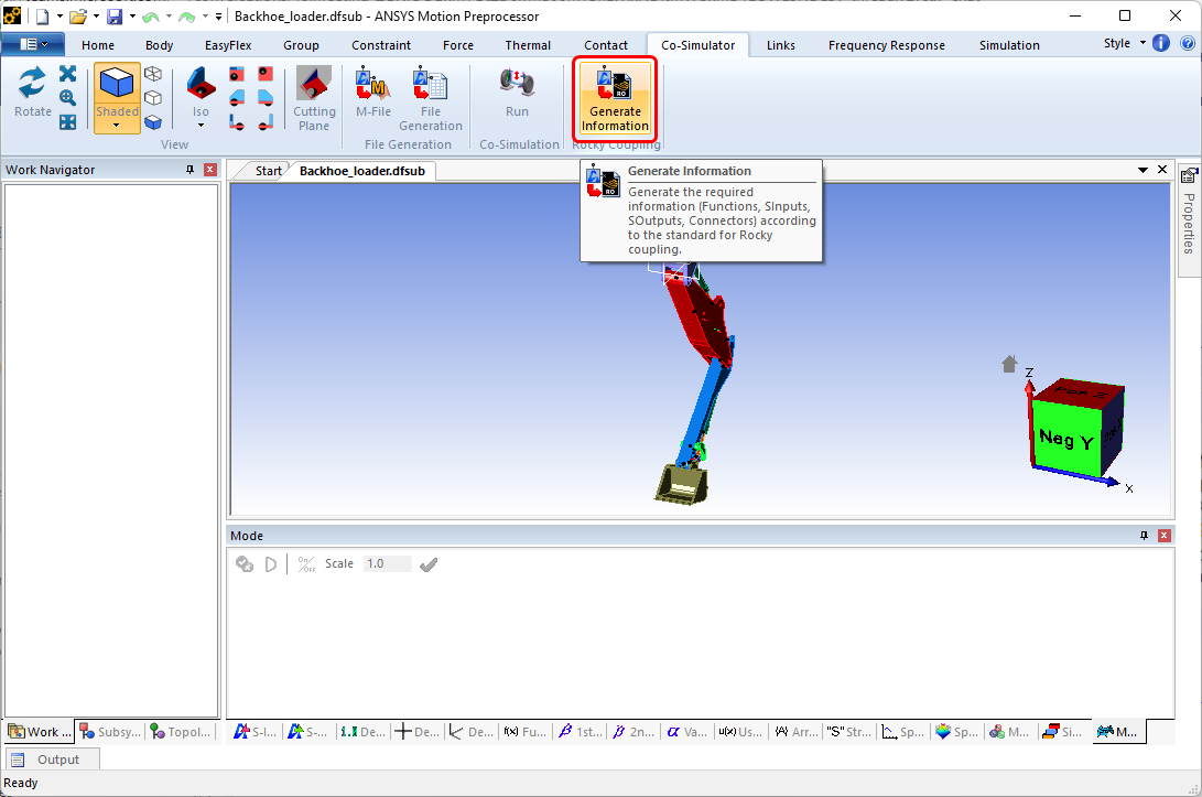 从Co-Simulator选项卡中,单击Rocky Coupling工具栏上的Generate Information按钮(如图所示)。