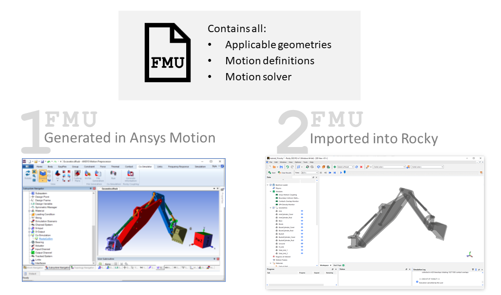 单个FMU文件包含Rocky耦合所需的所有几何结构、运动定义和运动求解器信息。
