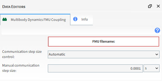 重要: 为确保正确运动,请在Multibody Dynamics FMU Coupling模块中以及导入几何结构时使用相同的FMU文件。