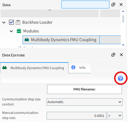在Data面板的Modules下,选择Multibody Dynamics FMU Coupling。
