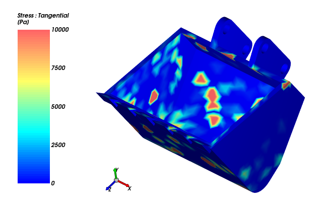 此外,您还可以在3D View窗口中可视化铲斗几何结构上的应力: