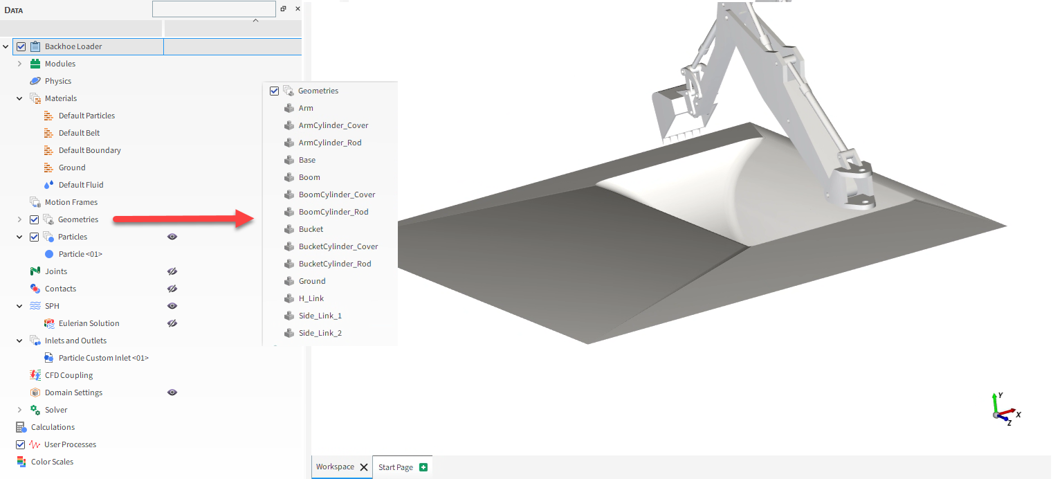 本教程考虑的场景是评估带后铲的斗式装载机的铲斗从地下坑中挖出材料时的性能。
