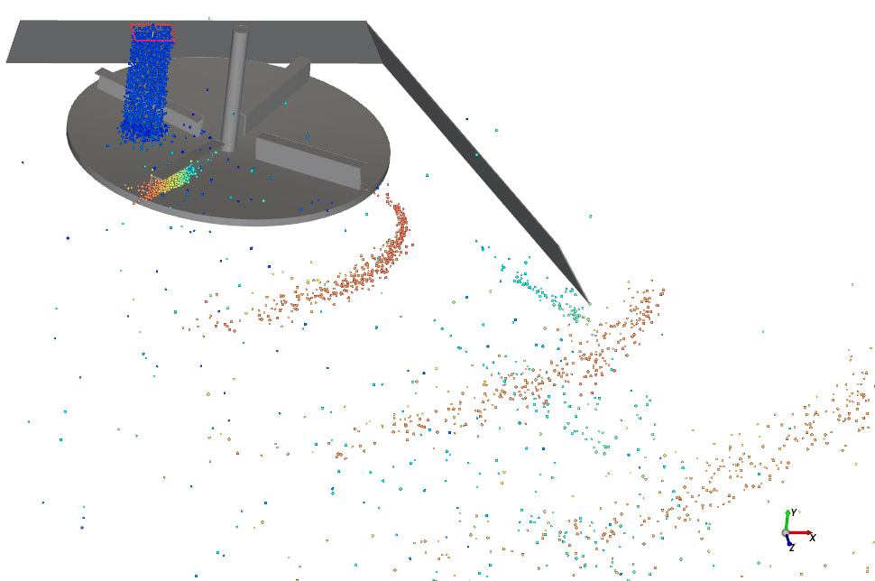 但为了缩短第一部分的处理时间,我们没有包含表示地面的几何结构;因此,本教程中的颗粒在Y方向落得足够远之后很快就离开了域。