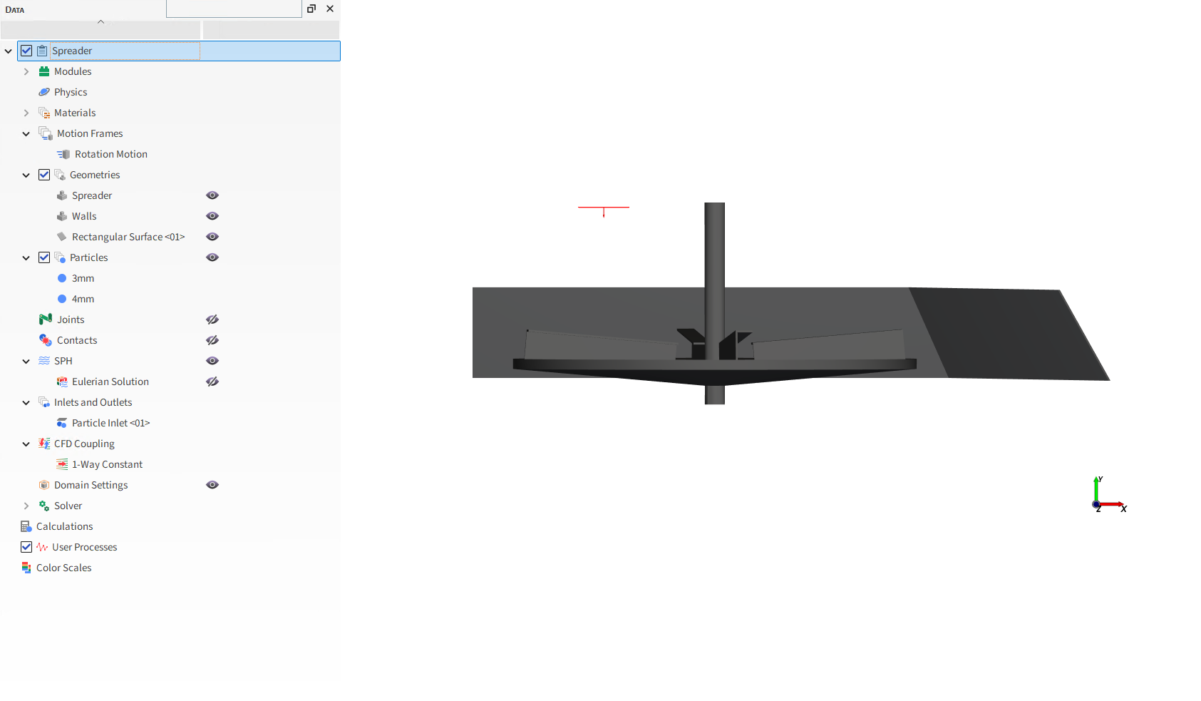 Frame Name Rotation Motion 添加运动 Motions | Type Rotation ⯆ … | Initial Angular Velocity 0, 810, 0 [rev/min] F Geometries ﹂Spreader