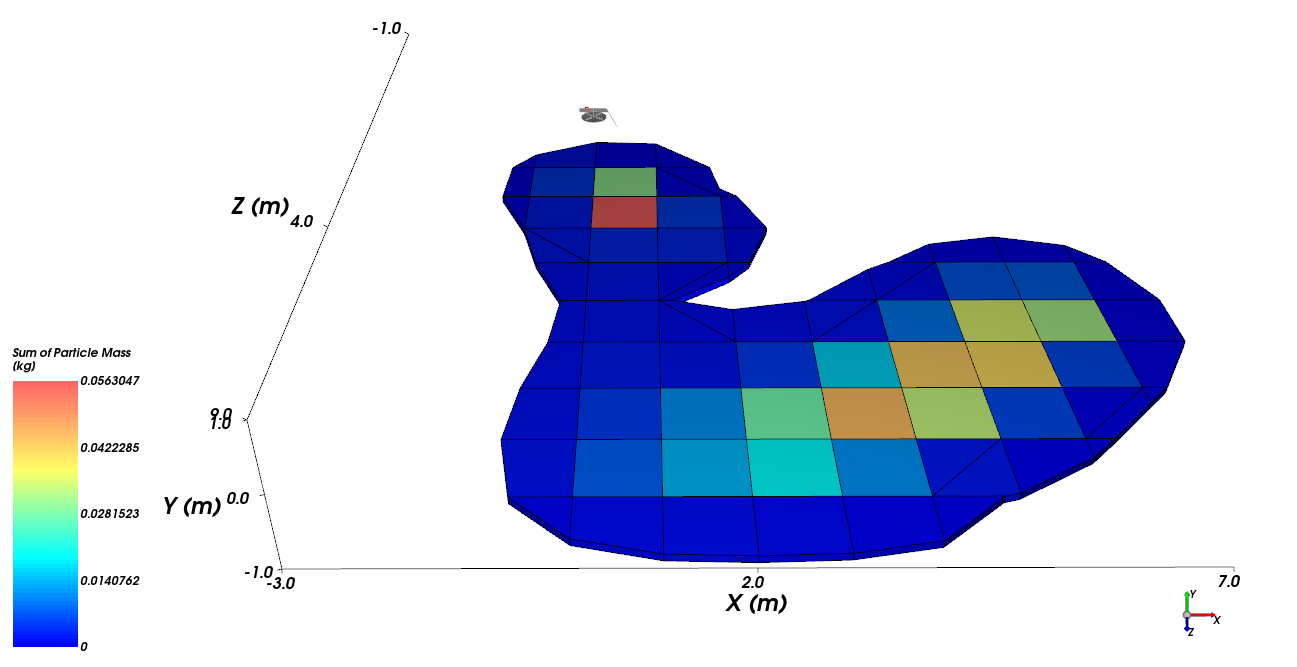 每个颗粒都记录在其最后所处的位置,或者其离开域之前的位置,亦或者其最后一个时间步长所处的任何位置,其中包括当时仍飘在空中的任何颗粒。