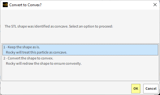在这种情况下,我们希望Rocky将颗粒视为Concave,以保持其形状。