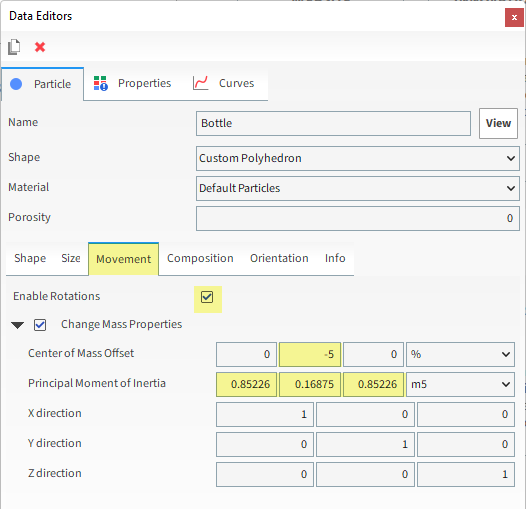 为了正确表示Filled Bottle的行为,我们必须改变颗粒的Center of Mass和Moments of Inertia。