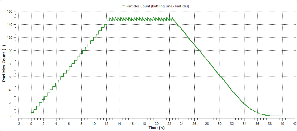 时间数列图显示,在大约13s(第一个瓶子离开域时)和23s(最后一个瓶子注入时)之间,域内颗粒数保持稳定。
