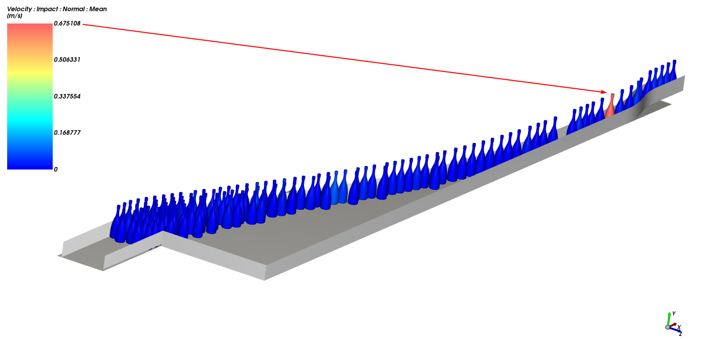 视图显示,最高撞击速度发生在轨道的最后S-curve附近,这是最快皮带输送瓶子的时候。