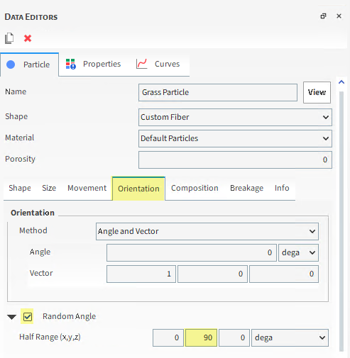 通过这种方式,我们已经定义了y角限制,在此范围内,Rocky将随机定向Particle集中的每个单颗粒。
