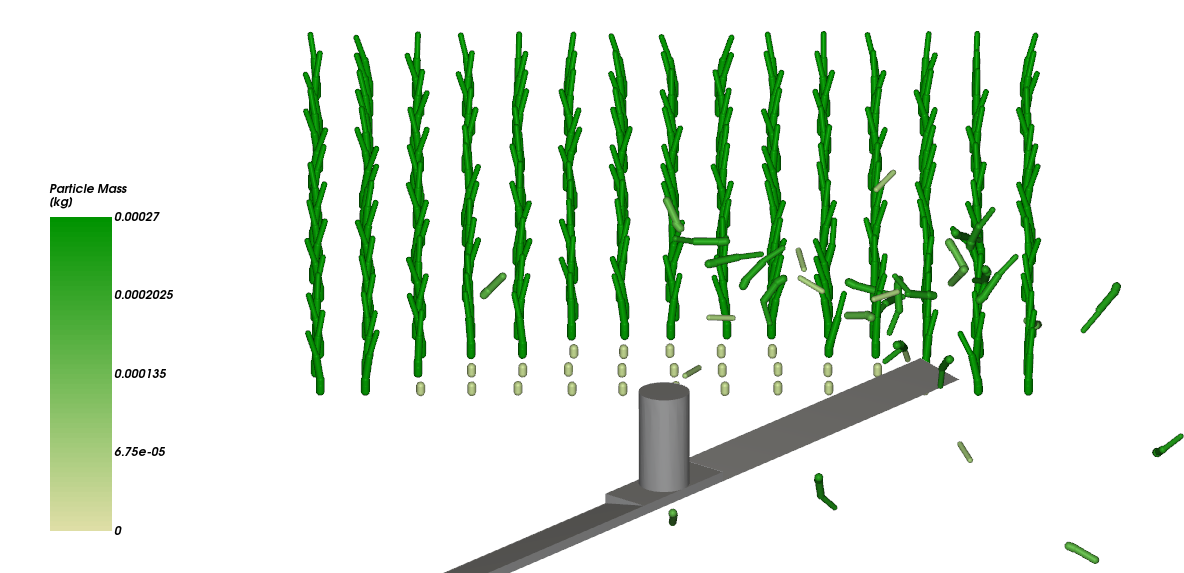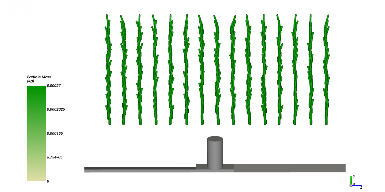 (第一部分)设置并处理一次仿真,该仿真使用.csv文件定义的Custom Fibers。使用Particle Custom Inlet以及Custom Fibers和 Frozen Segments,来设置草Fiber 的位置。