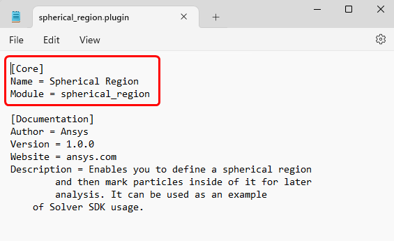 将以下文件结构作为指导,导航至您的工作文件夹,以验证spherical_region 模块的编译内容现在是否已在与您安装的Solver SDK匹配的版本文件夹(例如25.1.0文件夹)中提供。