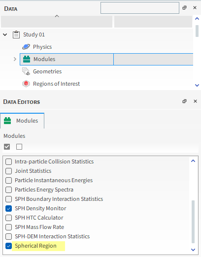 您从Data面板中选择Modules时,Data Editors面板中应该会出现一个新模块的复选框(如图所示)。