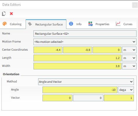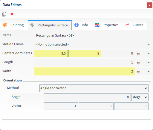 从Data Editors面板中,在Rectangular Surface子选项卡上,定义:Center Coordinates和Width(如图所示)。