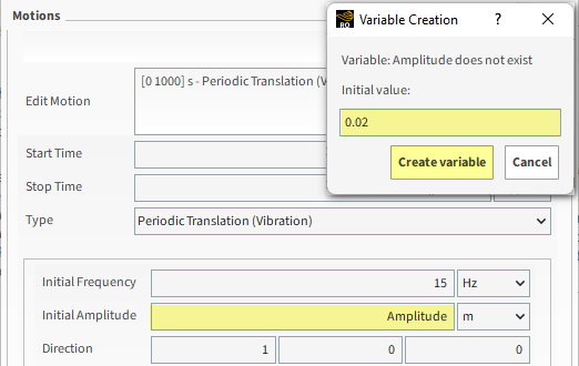 将Initial Amplitude定义为Amplitude,并将Initial Value定义为0.02 m
