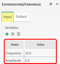 该面板显示了所选设计点的Rocky输入变量(振幅和频率)的值。