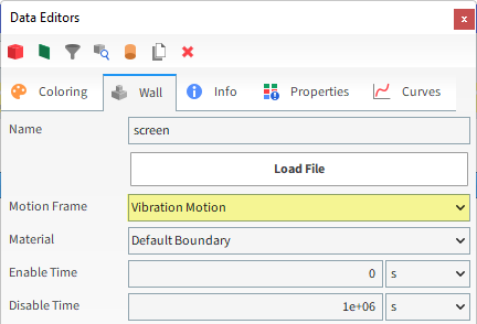 从Data Editors面板中,在Wall选项卡上,从Motion Frame下拉列表中选择Vibration Motion(如图所示)。