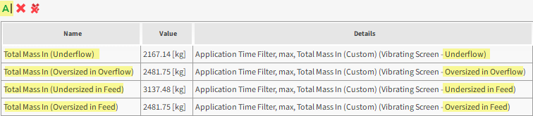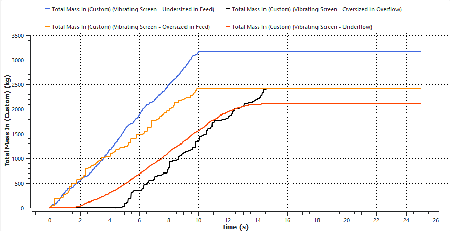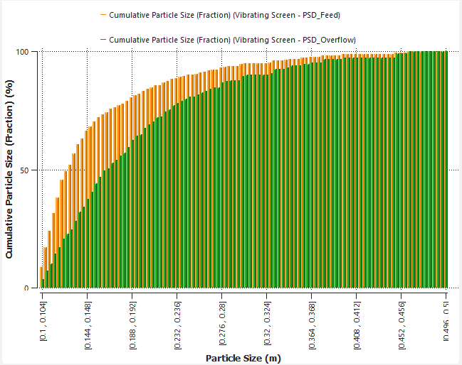 Oversized效率(Eo)达到1(最大值)意味着所有输入的Oversized颗粒在筛网上移动,并根据需要进入溢出区域(在此案例中)。