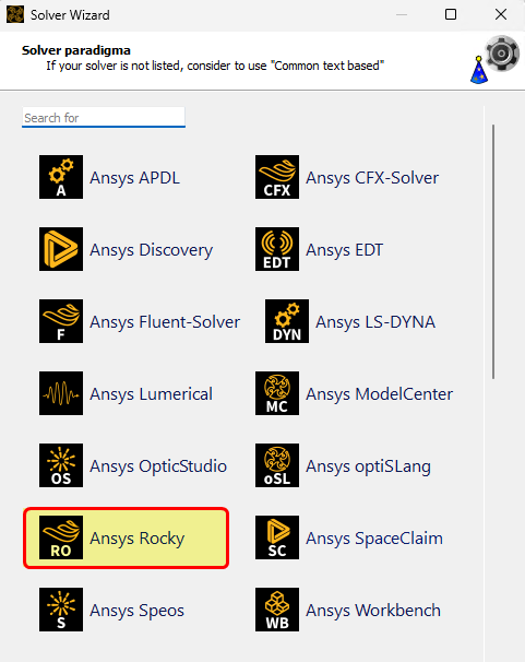 从Solver Wizard窗口中,选择Ansys Rocky。
