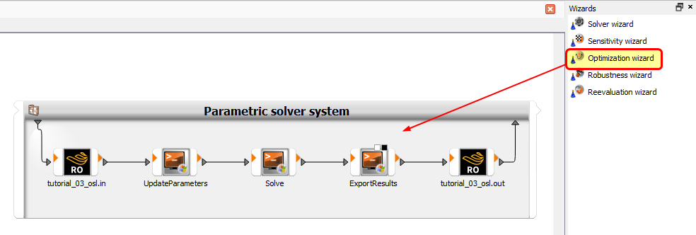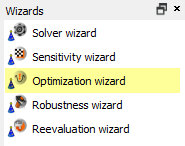 提示: 您可以通过窗口右上角的optiSLang用户界面访问Wizards面板。