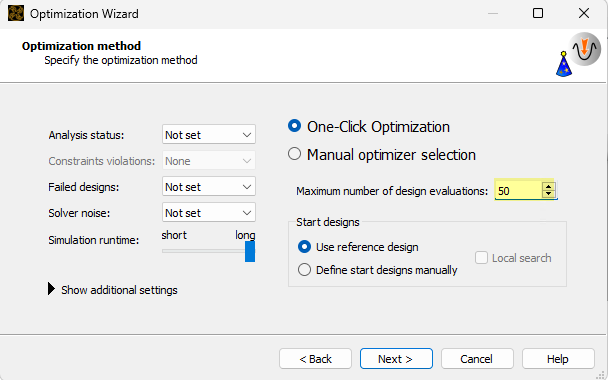 对于本教程,我们将定义要处理的最大仿真数量,并将其他参数作为默认值。