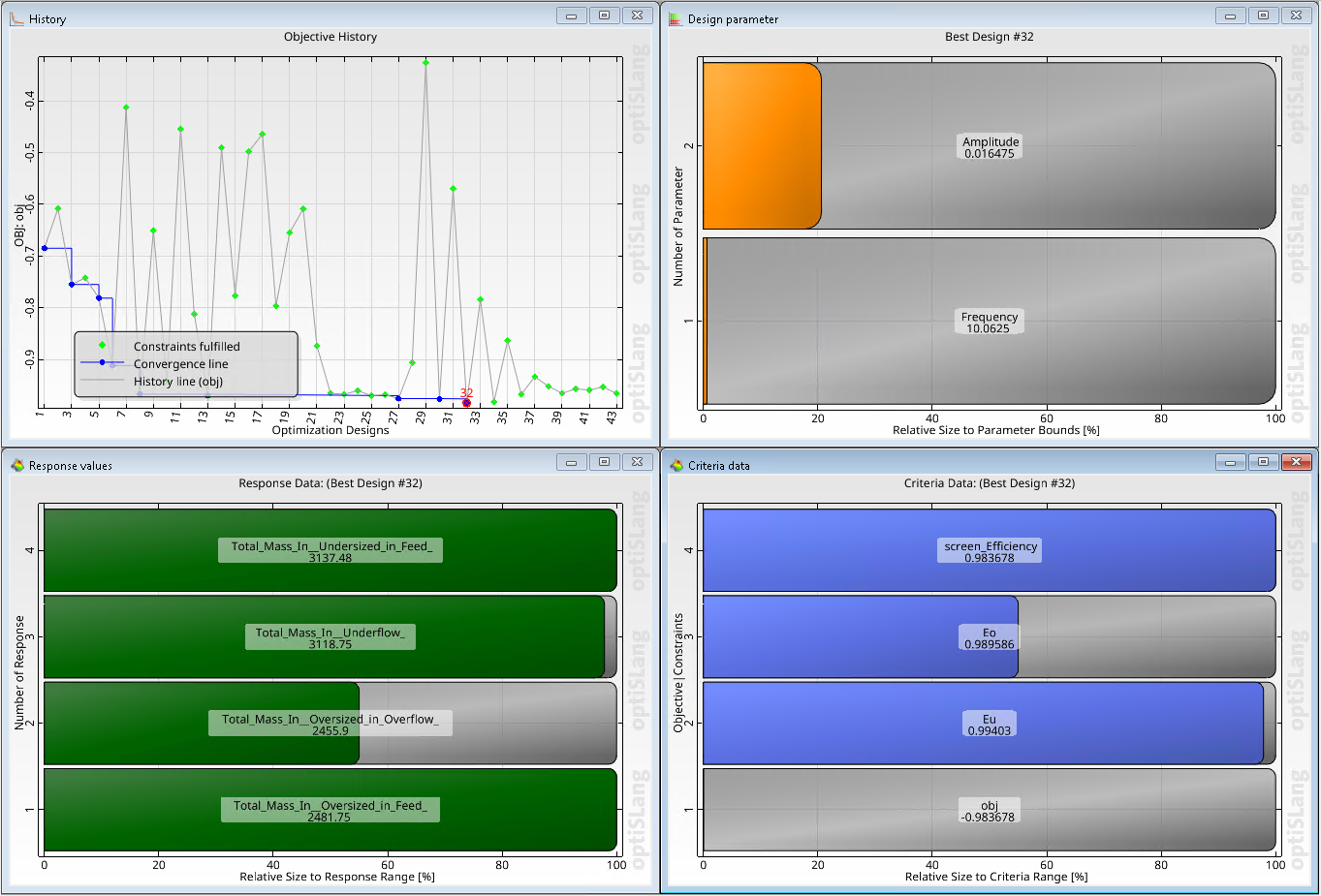 本教程的主要目的是了解如何通过optiSLang对振动筛的筛分效率进行优化分析。我们将从第二部分结束的地方继续。