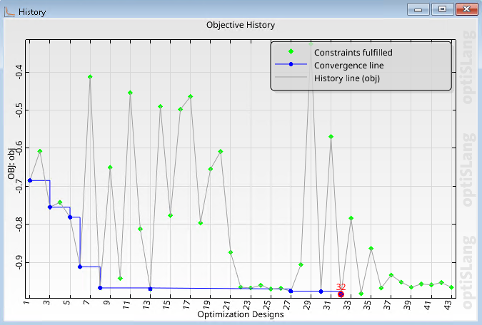 该面板通过振幅和频率(设计点)的不同组合显示目标的发展过程。它还表明了解决方案在哪个设计点可以获得最佳结果。