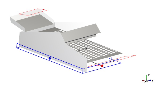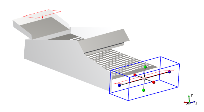 对于Motion Frames步骤,单轴Periodic Translation (Vibration)运动(显示为黄色)将在运动坐标系内定义,然后应用于振动筛几何结构。