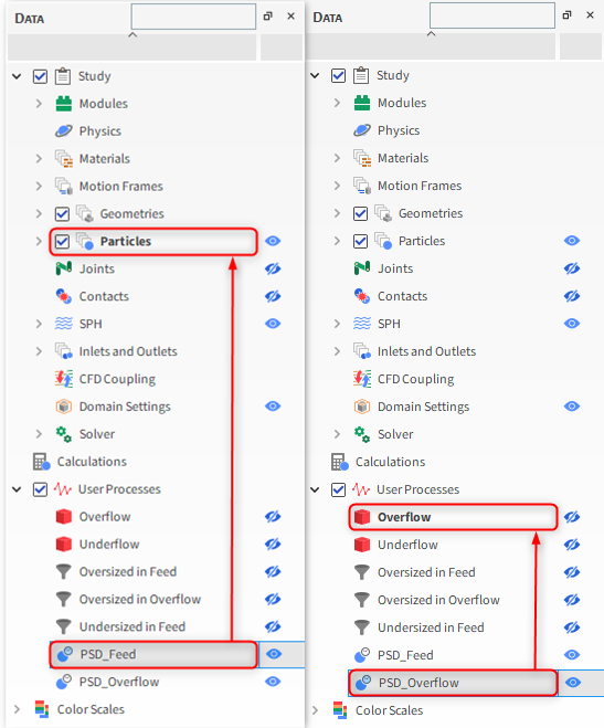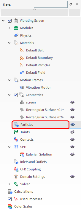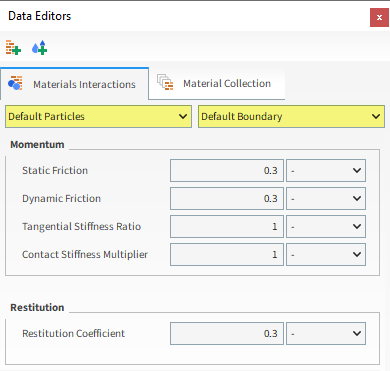 从Data Editors面板的左侧下拉列表中,选择Default Particles,并从右侧下拉列表中,选择其中的一对:Default Particles或Default Boundary。