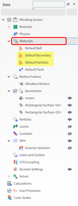 对于Materials步骤,将只使用两种材料:一种用于所有几何结构部分(Default Boundary),另一种用于颗粒(Default Particle)。