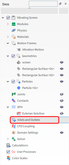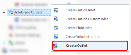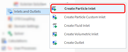 从Data面板中,右键单击Inlets and Outlets,然后选择Create Particle Inlet。